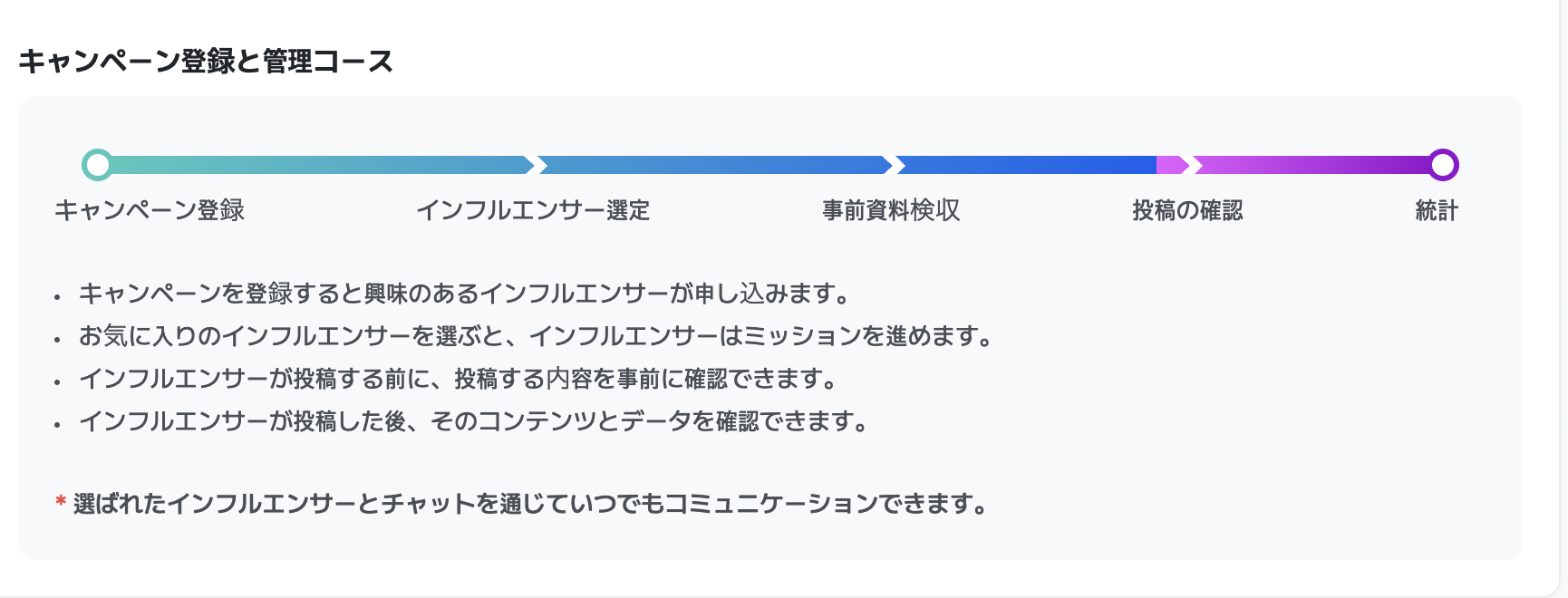 100,000人〜300,000人フォロワーのパワーインフルエンサーを中心に質の高いキャストのみを厳選してご提供致します。一度の募集に50〜200人単位のインフルエンサーが集まります。